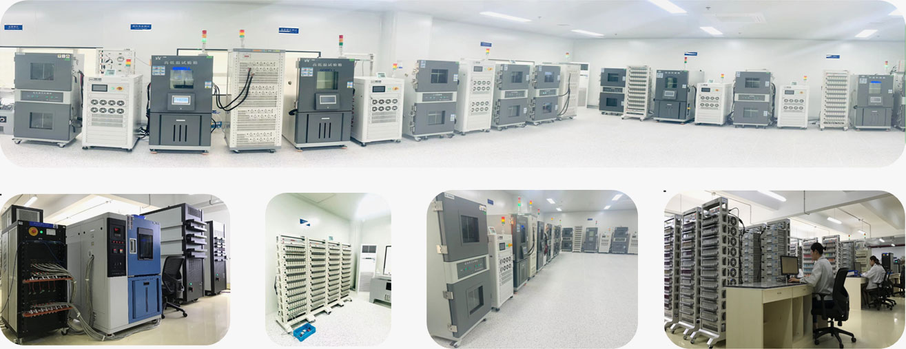 6,000+电池测试通道,采用最新款新威电池性能测试台,可在-40℃~150℃的各种温度范围内测试电池性能。